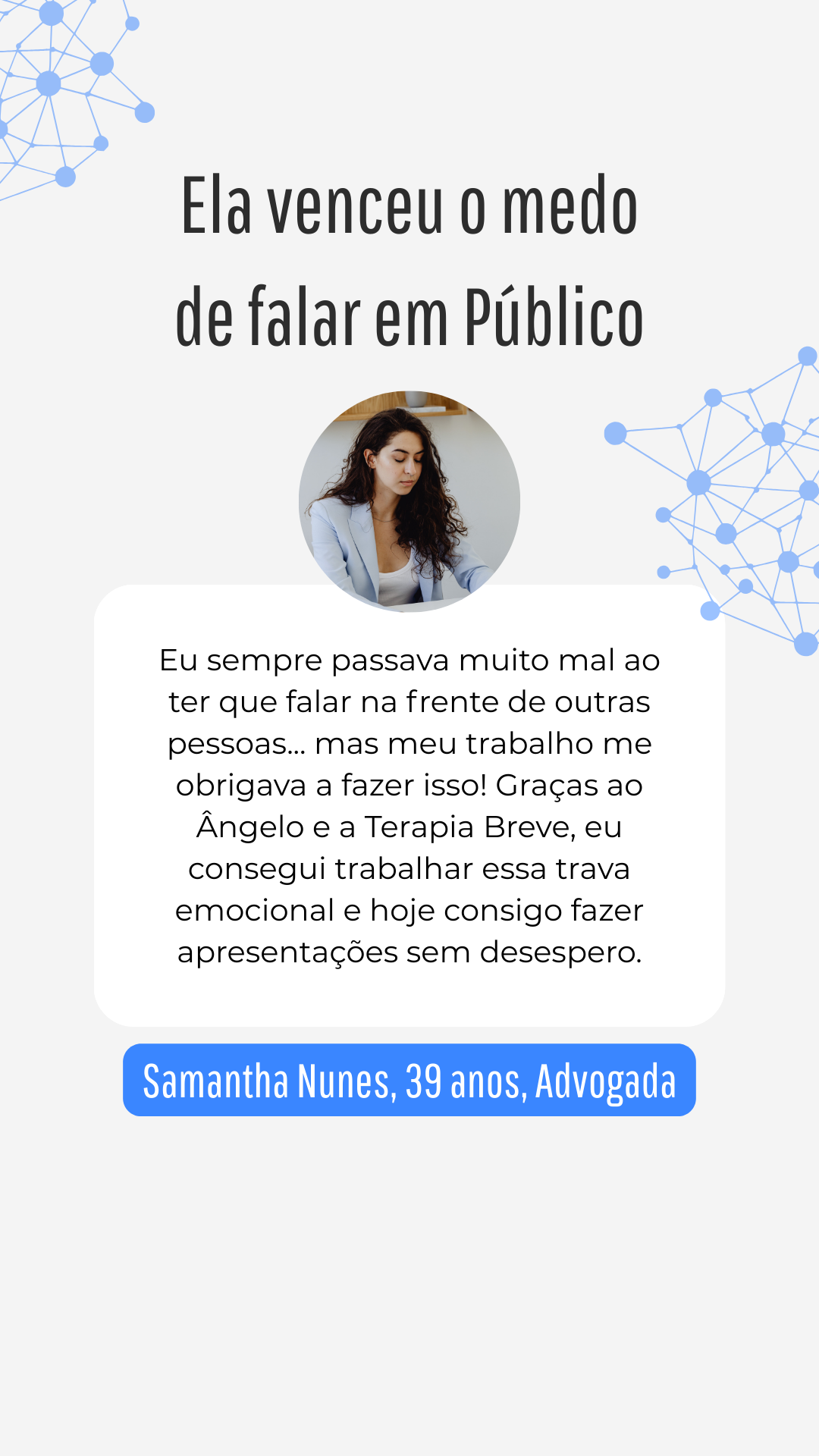 Cada atendimento é único e especial. Nos últimos 6 anos, tive a honra de servir e impactar positivamente centenas de pessoas a superarem medos, inseguranças e bloqueios emocionais que as impediam de avançar em suas vidas e carreiras.