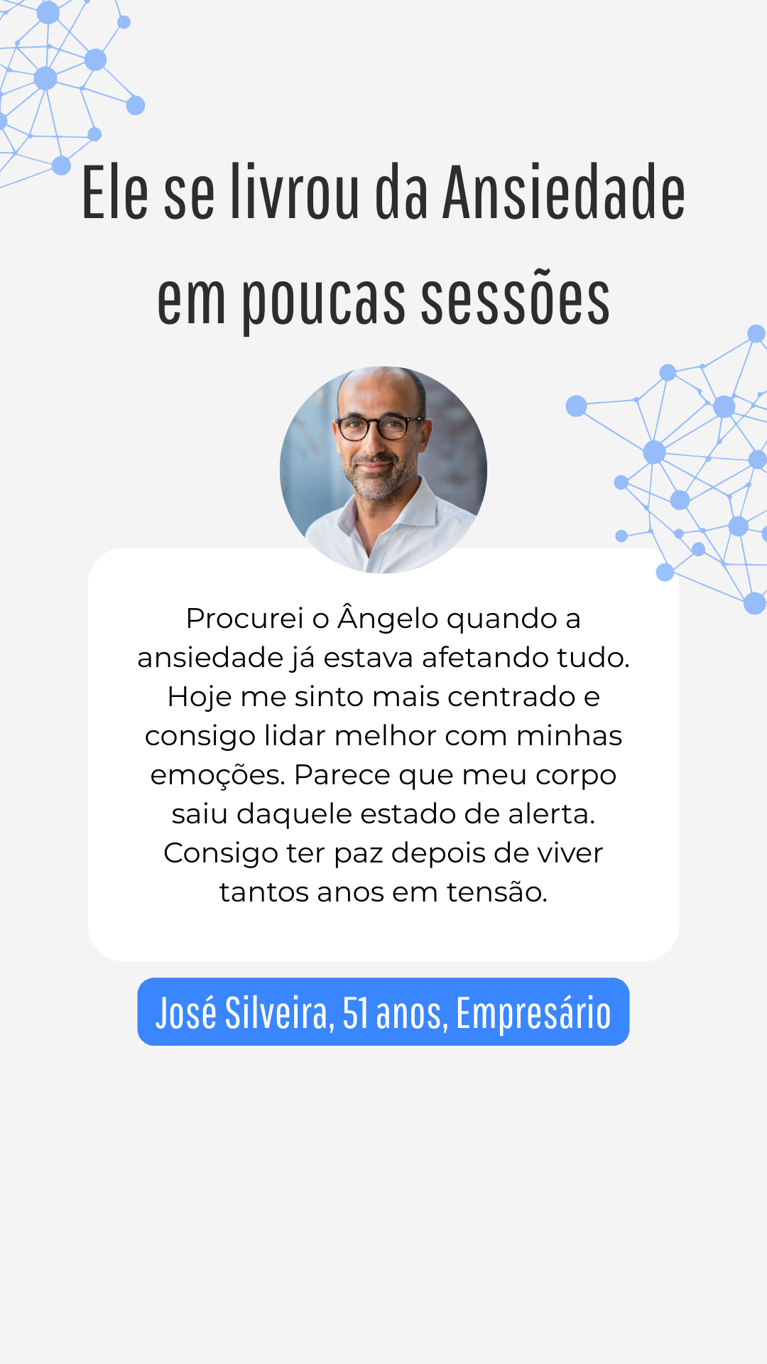 Com três pós-graduações em Neurociência, Ângelo integra fundamentos científicos sobre o funcionamento do cérebro, das emoções e do comportamento humano ao processo terapêutico. Seu foco não é ensinar o paciente a conviver com o sofrimento emocional, mas ajudá-lo a reorganizar internamente seus registros emocionais para que o equilíbrio volte a ser o estado natural.